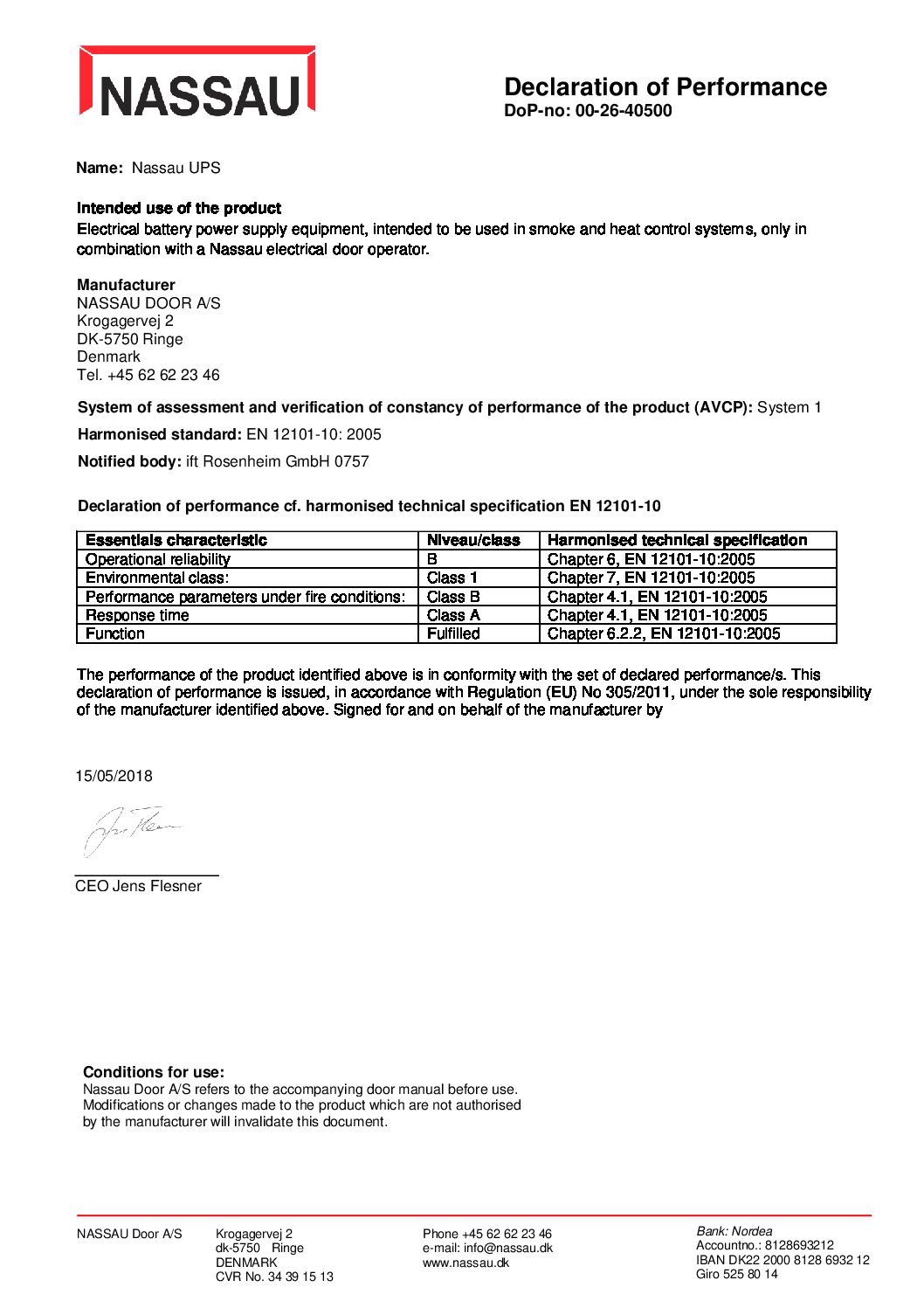 With NASSAU’s battery backup solution for sectional doors, the controller type NCU310UPS is fully approved and certified according to the applicable EN 12101-10 standard for fire ventilation systems. This ensures that the solution meets the strictest requirements for both safety and functionality, making it suitable for industrial, commercial, and modern public buildings.