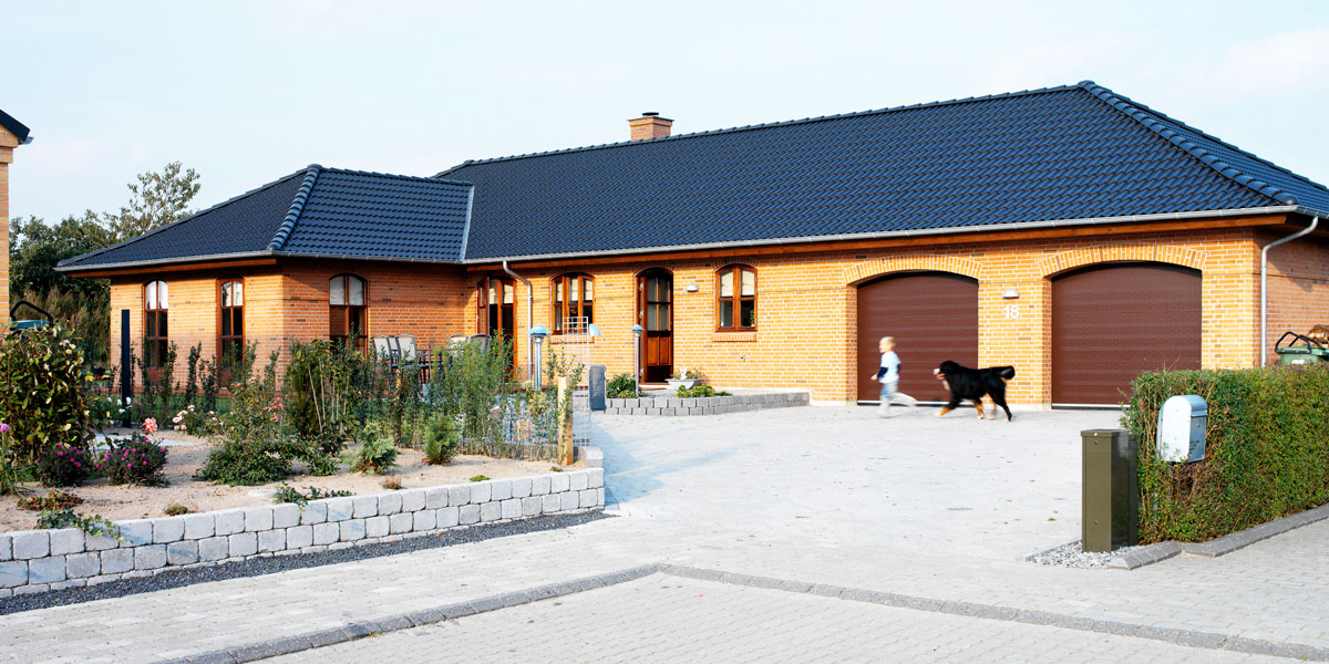 NASSAU Woodgrain Garage Doors are manufactured in aluminum with imitation of wood structure outside and a horizontal profile. The detailed wood structure gives a natural, authentic appearance, making the door fully consistent with the overall look of a building. Woodgrain, like the other two Garage Door types, is built in three sections with 44 mm insulating PU foam sections, which effectively break the thermal bridge between the front and the back panel. This construction gives the best insulated Garage Doors currently available on the market. Danish-produced Garage Doors from NASSAU are supplied with bottom and top profiles in black powder-coated aluminum and an effective sealing strip. It gives a great visual finish and secures strong tightness against weather, wind, and wear. If you wish higher comfort and flexibility in a busy everyday life, then Garage Doors from NASSAU are the right choice. An advanced electrical operation system and practical remote control allow you to open and close the Garage Door convenient and effortless directly from your car.